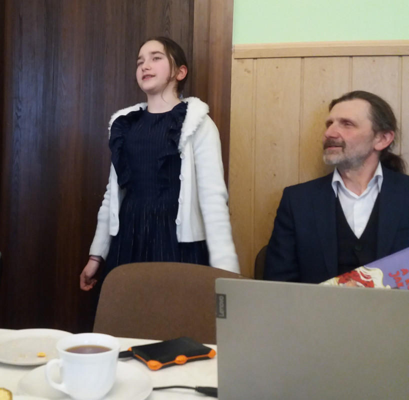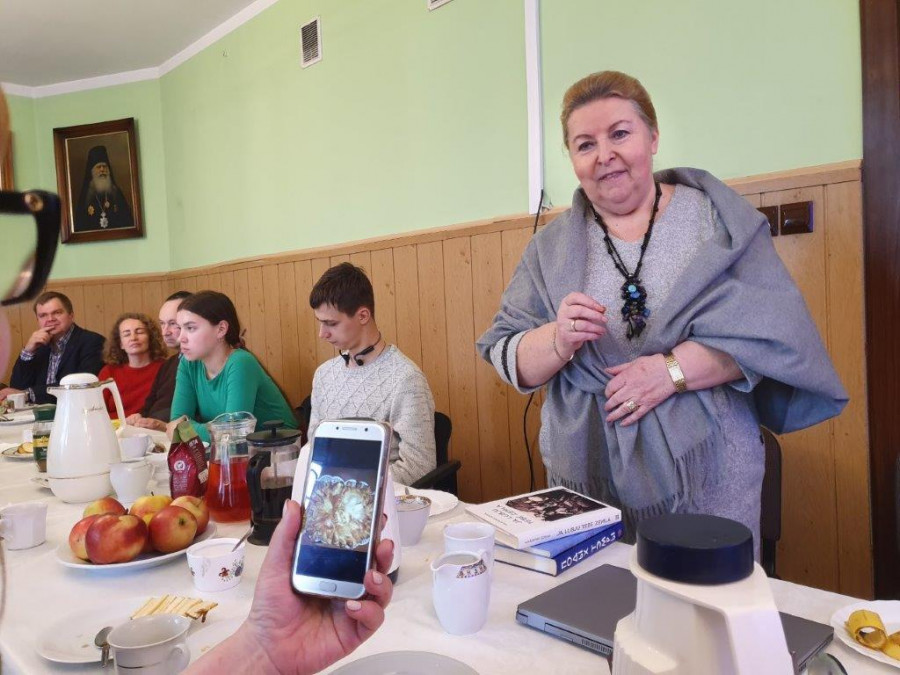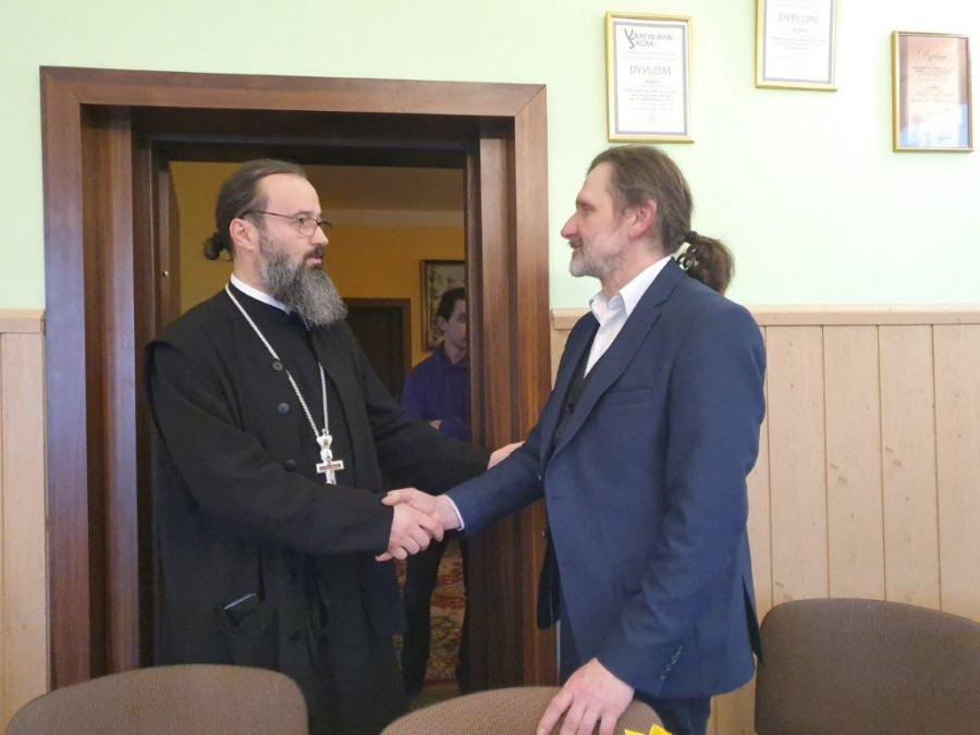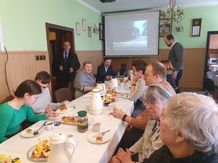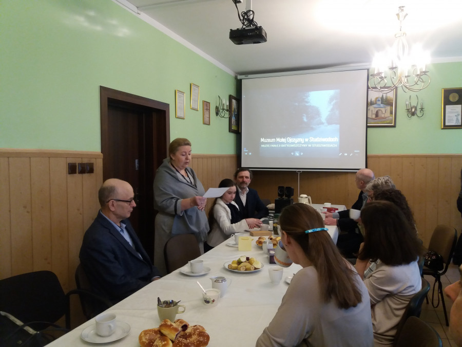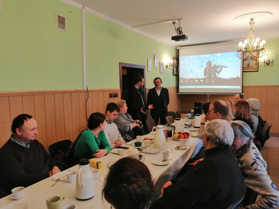 Dziesiątego kwietnia, w V Niedzielę Wielkiego Postu, św. Marii Egipcjanki, jak to zwykle w dzień Pański, wolscy parafialnie gromadzili się nie tylko na modlitwie, ale też politurgicznych spotkaniach. Te jednak owego dnia były szczególne, gdyż gościliśmy wyjątkowego człowieka o wielu talentach: pana Doroteusza Fionika. Założyciela Muzeum Małej Ojczyzny w Studziwodach, etnografa, historyka, muzyka, aktywisty społecznego, redaktora wielu publikacji. Nie przyjechał sam, lecz w towarzystwie części swojej rodziny, także aktywnej lokalnie, a także właśnie swoich publikacji oraz filmu pt. Pryweli nas siudy pieśni Waszych bat'kuow („Przywiodły nas tutaj pieśni Waszych ojców”), pokazanego praktycznie premierowo.