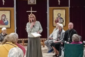 Na początku naszej wizyty zostaliśmy powitani w Cerkwi pw. św. Aleksandry przez Proboszcza, ks. prot. Andrzeja Bołbota. Dzięki jego staraniom i ofiarności dobrych ludzi historyczna świątynia zachwyca złoconymi kopułami i wspaniałymi freskami zdobiącymi wnętrze cerkwi. Ks. Proboszcz przybliżył nam dzieje i współczesność parafii w Stanisławowie, po czym zaprosił gości na poczęstunek.