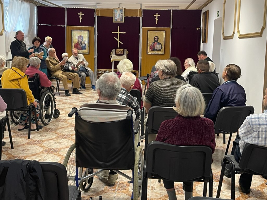 Podsumowując nasze spotkanie ks. Proboszcz wraz mieszkańcami Domu Opieki zaśpiewali Mnogaja Leta na cześć artystów.